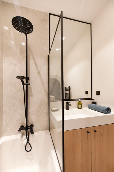 Je m'attèle à transformer cette matière pour faire de mes appartements une oeuvre architecturale, mélangeant matières minérale et couleur végétale, afin de créer un tableau à taille humaine monochromatique et éclectique.